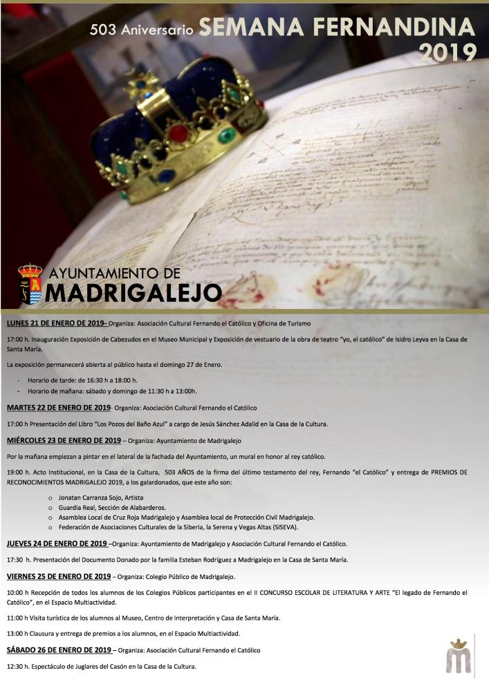 Se da a conocer el programa de actividades para el quingentésimo tercero aniversario de la muerte de Fernando el Católico en Madrigalejo.